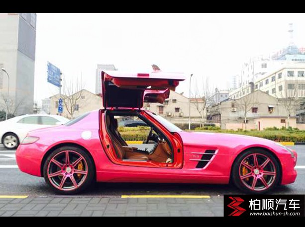 奔馳SLS-AMG,搶眼的電鍍桃紅色,展開的海鷗雙翼,不管在哪里都是一條亮麗的風景線。