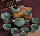 景德鎮(zhèn)9頭哥窯茶具朝日壺方圓杯豆青